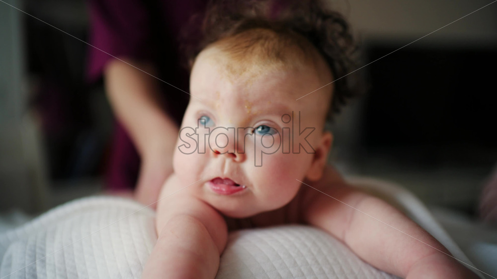 Home » Shop » 1 Video » Baby lying on their tummy while an adult massages them and performs mobility exercises