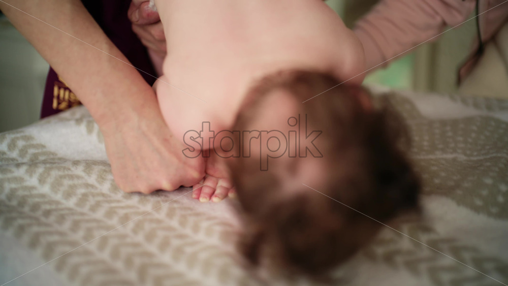 Home » Shop » 1 Video » Baby lying on their tummy while an adult massages them and performs mobility exercises