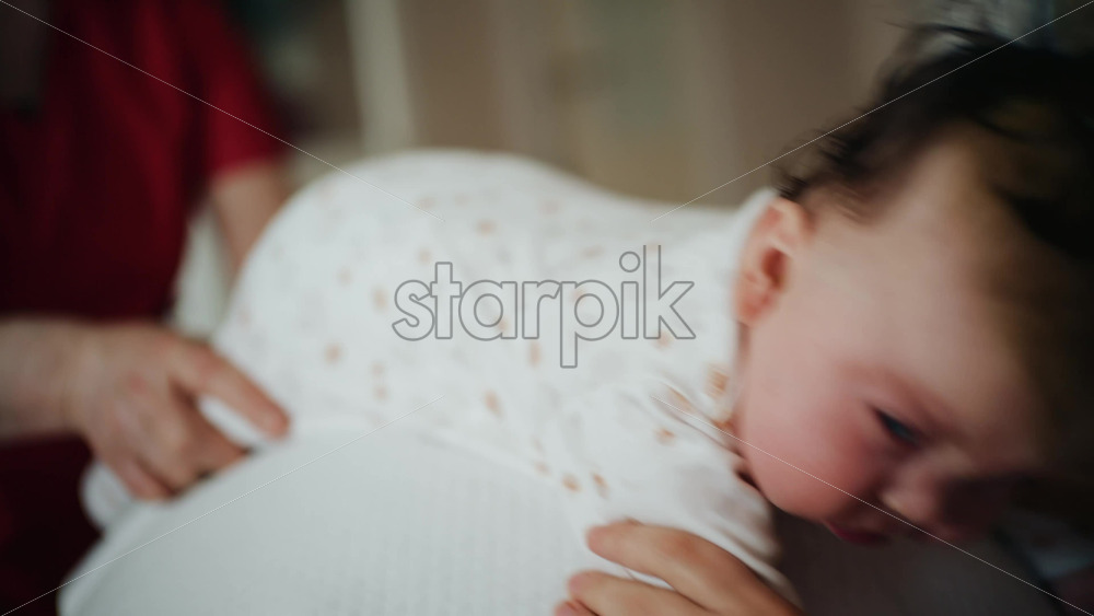 Home » Shop » 1 Video » Baby placed on tummy on a stability ball while adults support the infant’s torso and shoulders