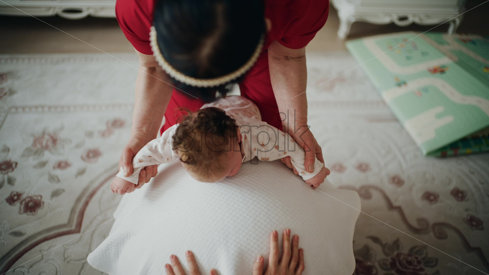 Home » Shop » 1 Video » Baby placed on tummy on a stability ball while adults support the infant’s torso and shoulders