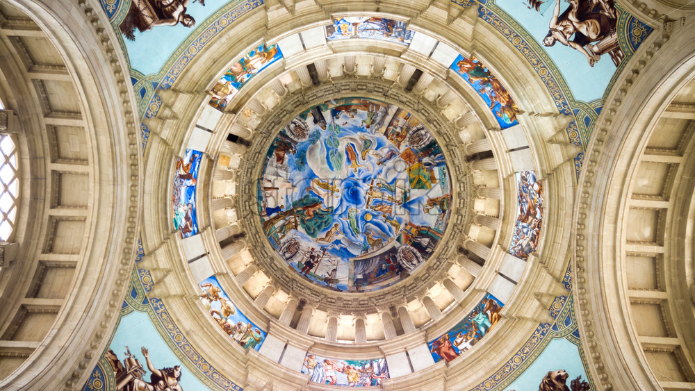 BARCELONA, SPAIN – JUNE 19, 2021: The National Palace ceiling, interior