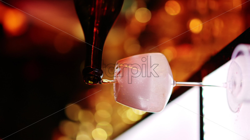 Barman making cocktails with white sparkling wine at the bar at night with red neon lights, slow motion vertical screen Royalty Free Stock Video Footage