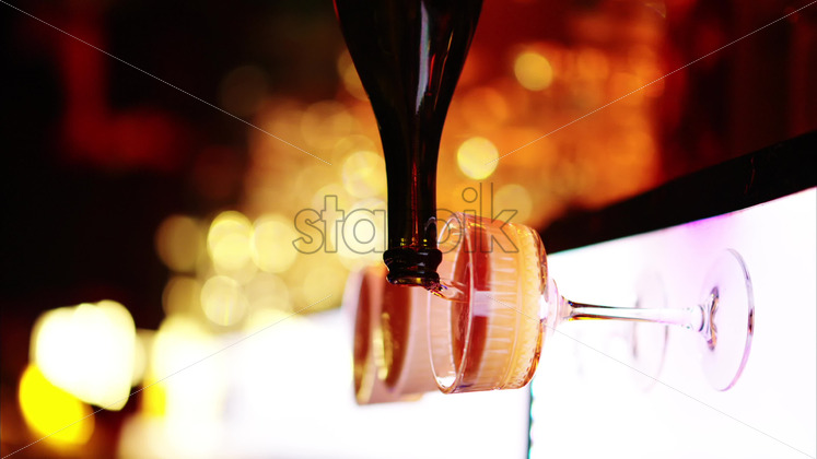 Barman making a cocktail with bitter alcohol at the bar at night with red neon lights, slow motion Download royalty free stock video footage Royalty Free Stock Video Footage
