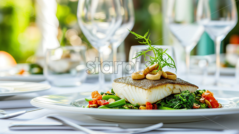 The pan-seared fillet is impeccably arranged on a bed of sautéed greens, accompanied by a drizzle of lemon myrtle sauce.