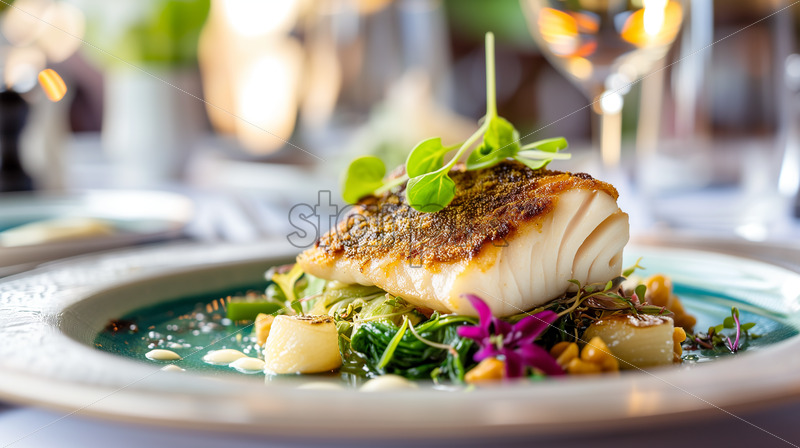 A gourmet Barramundi dish with a Macadamia Crust, showcasing culinary finesse and local flavors.