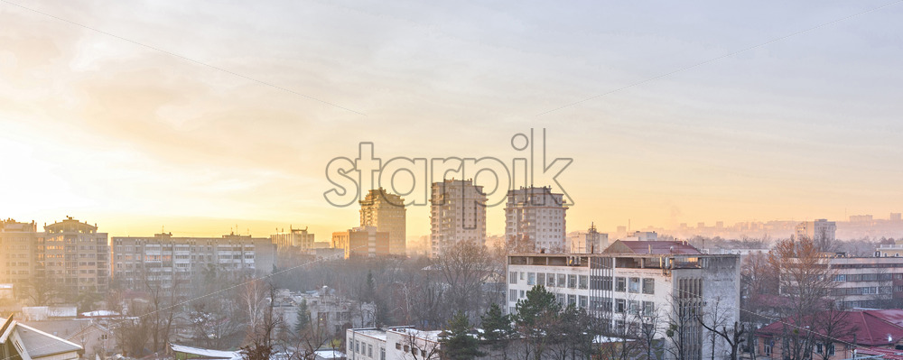 Home » Shop » photo » Beautiful sunset in Chisinau town. Warm light reflecting on buildings. Purple blue sky on background. Negative copy space, place for text. Moldova beauties