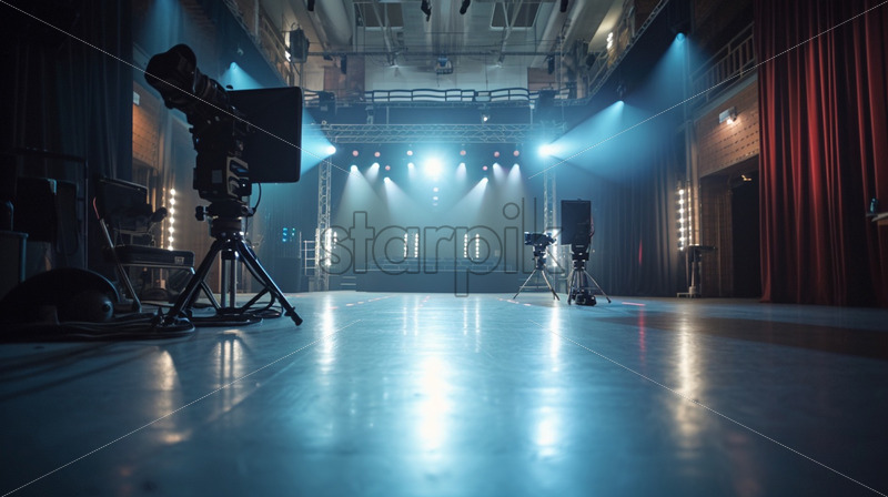 Silhouette of the director of photography with an audio headset in a television studio. Backstage of the preparation for the show Royalty Free Stock Video Footage
