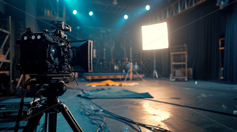 Cameraman filming a music performance on a professional TV camera. Backstage shooting television show in a dark studio Royalty Free Stock Video Footage