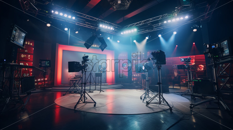 Flashing studio lights equipment on the ceiling of a TV set Royalty Free Stock Video Footage Royalty Free Stock Video Footage