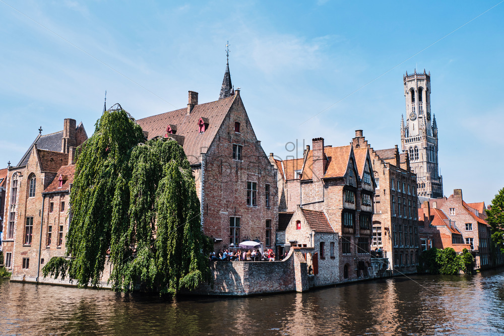 Home » Shop » buildings » Belfry of Bruges and the famous river. Belgium landmarks