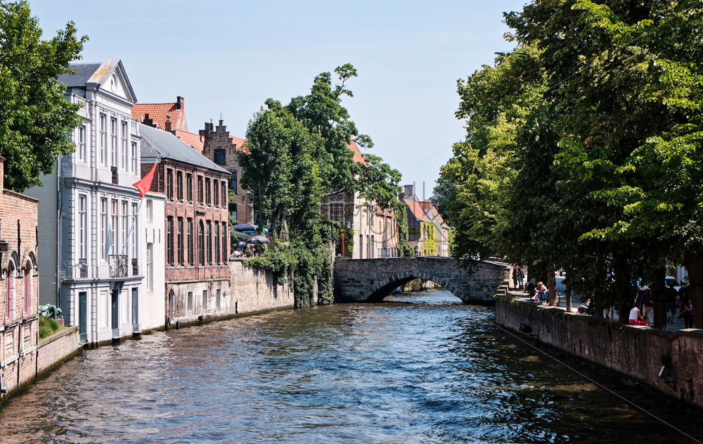 Belfry of Bruges and the famous river. Belgium landmarks Royalty Free Stock photo