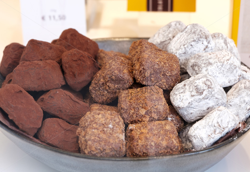 Belgian sweets in showcase of the store in Brussels, Belgium