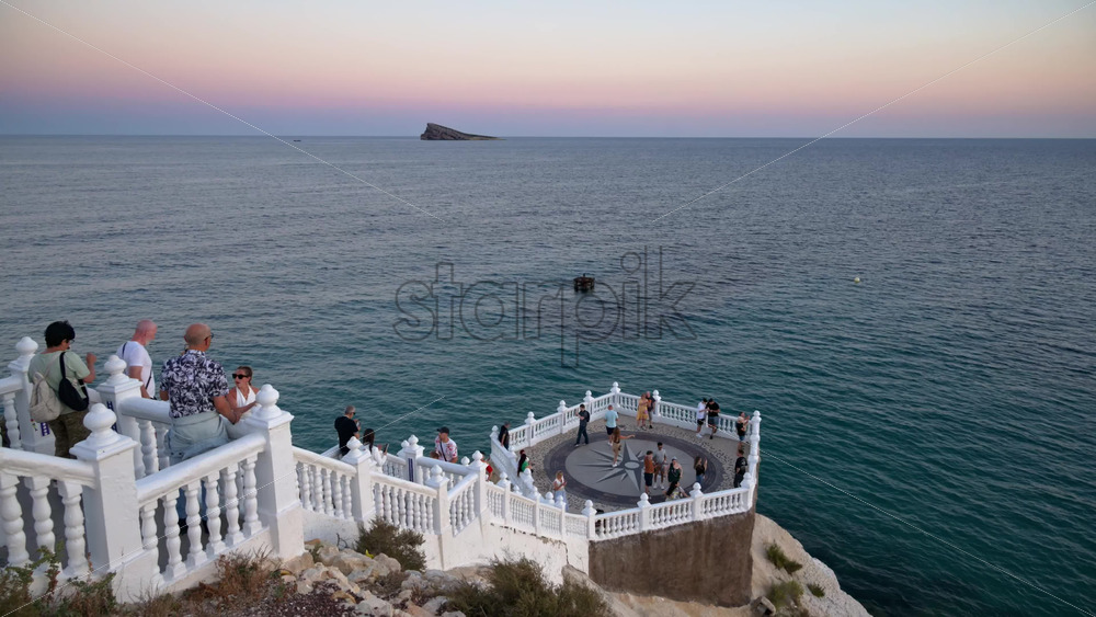 Benidorm, Spain – May 25, 2025: Aerial view of tourists enjoying the famous Balcon del Mediterraneo viewpoint Royalty Free Stock Video Footage