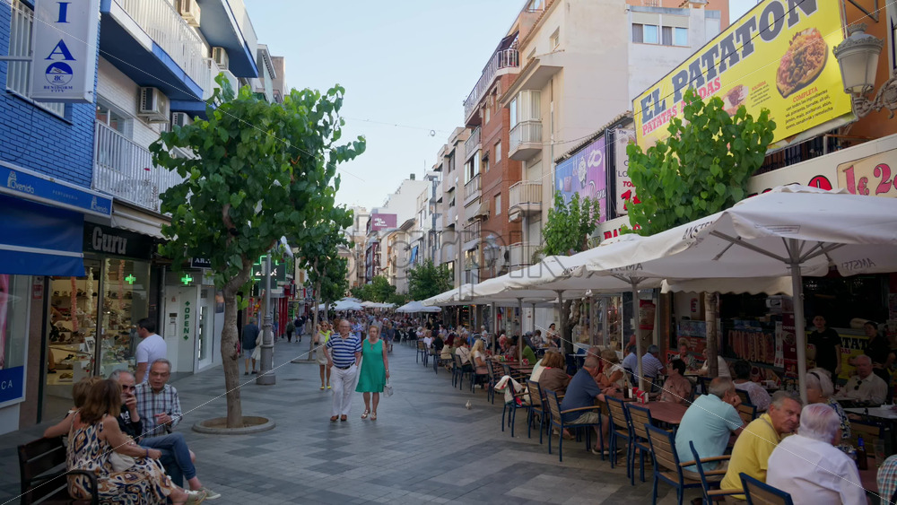Benidorm, Spain – May 25, 2025: Crowded pedestrian street funneling toward Levante Beach in the Old Town Royalty Free Stock Video Footage