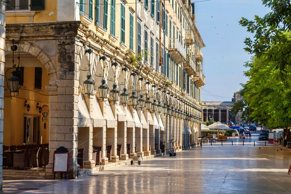 Home » Shop » city » Big tourist street of Corfu city, Greece. Daylight view