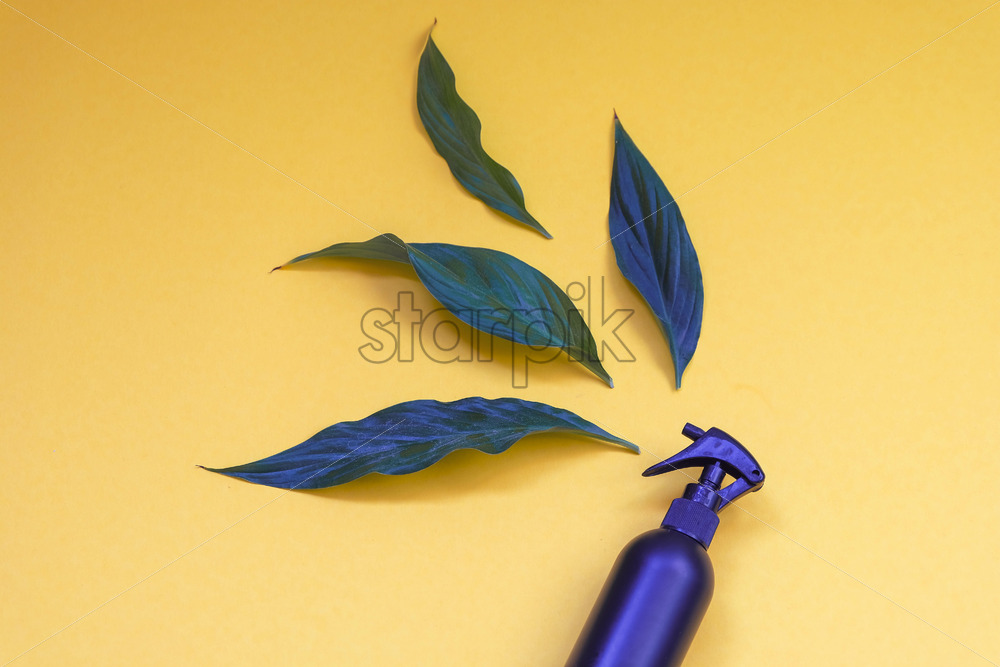 Home » Shop » photo » BIO products concept. Black spray container and green leaves