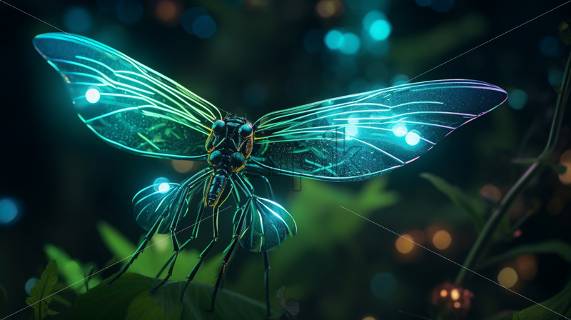 Bioluminescent insects creating a mesmerizing light display in the heart of the jungle