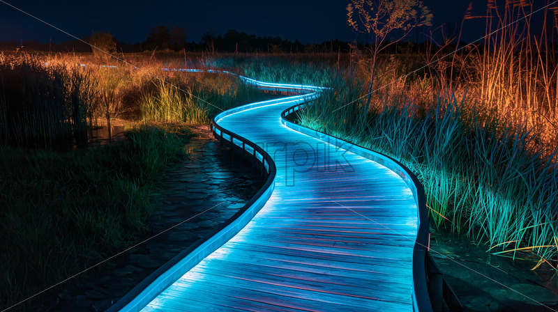 Experience enchanting evening strolls along our boardwalk, illuminated by embedded LED lights mimicking the glow of bioluminescent algae, creating a magical atmosphere.