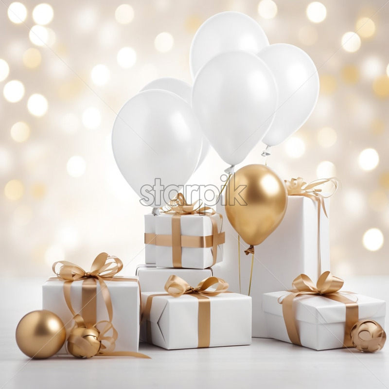 Multiple white gift boxes, notes with messages and fir cones. Red background. Holiday concept