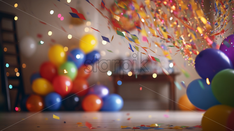 Colorful balloons filling the room, creating a festive and joyful atmosphere