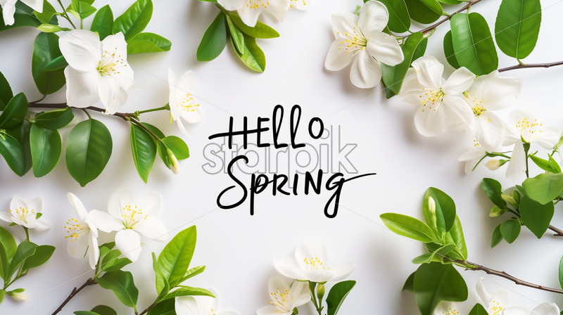 Blank frame with text “HELLO SPRING” with jasmine flowers