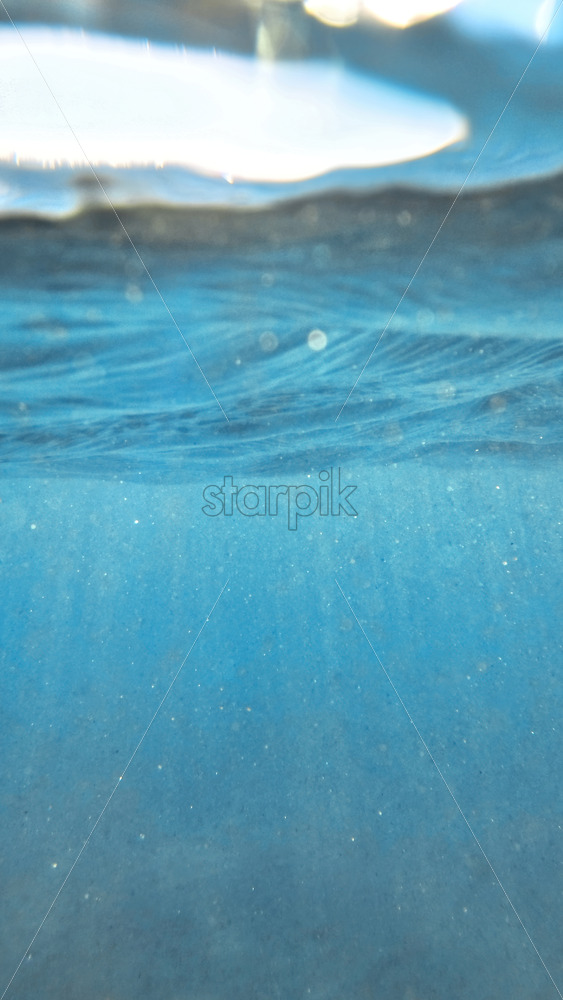 Blue and transparent water of the Mediterranean sea. Sunlight, multiple bubbles