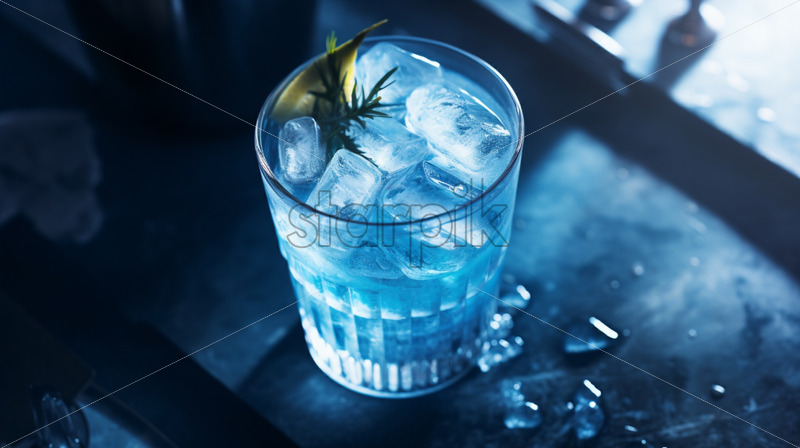 Red cocktail with orange slice on a table by the blue green sea video Royalty Free Stock Video Footage