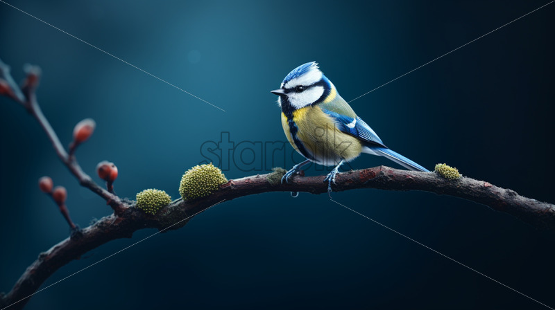 Blue tit on a branch of a tree