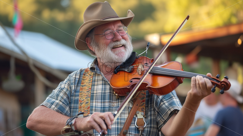 A candid shot capturing the bluegrass musician’s vibrant daytime performance at a country fair.