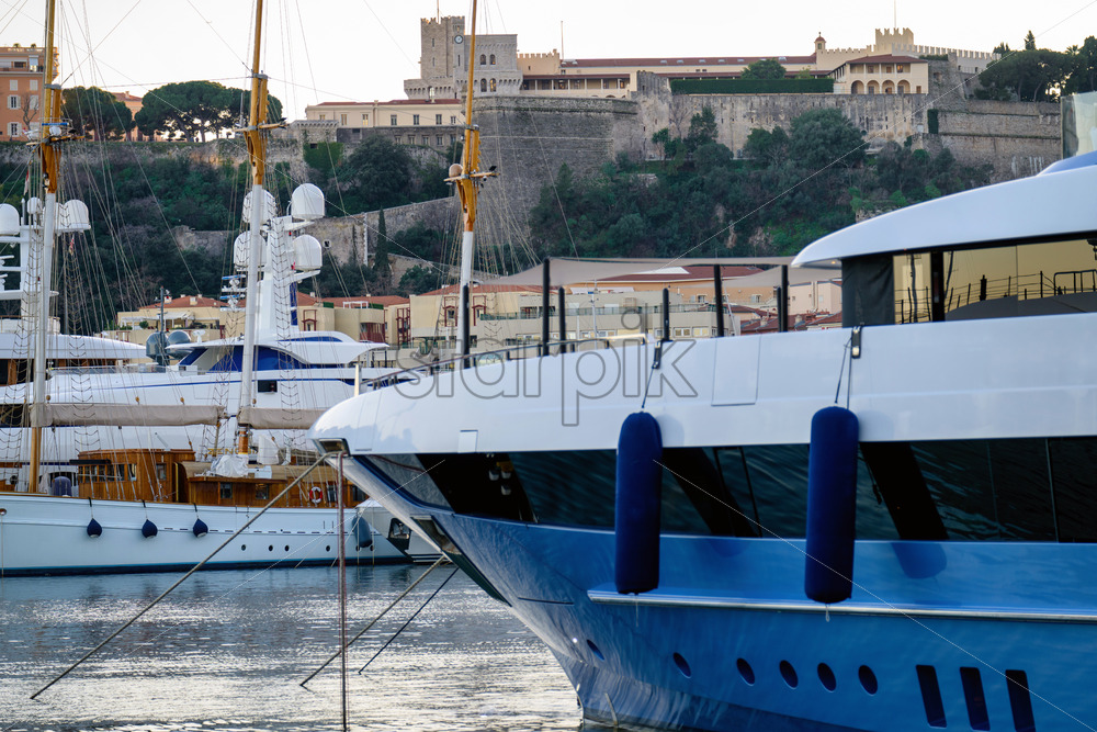 Boats at the Hercule port in Monaco, Prince’s Palace of Monaco