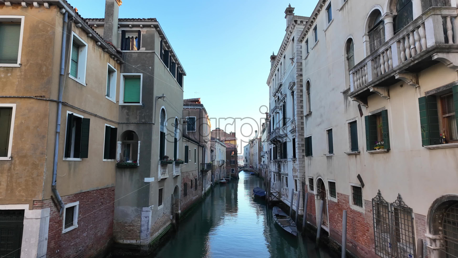 Boats docked on the side of a canal in Venice, Italy Royalty Free Stock Video Footage