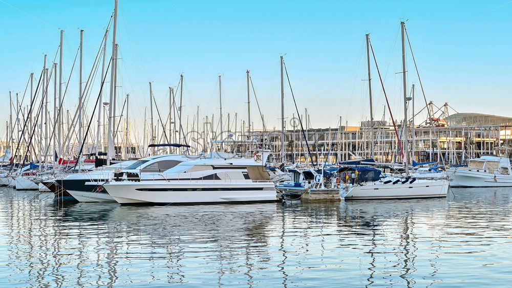 Boats and yachts in Port of Alicante. Mountain Benacantil in the background
