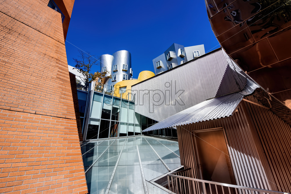 Home » Shop » photo » BOSTON, MASSACHUSETTS – OCTOBER 6, 2019: Multiple modern buildings in the Ray and Maria Stata Center
