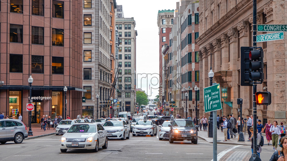 Home » Shop » photo » BOSTON, MASSACHUSETTS – SEPTEMBER 11, 2019: Shot of the busy street in city downtown with a lot of cars and people walking on the sidewalk