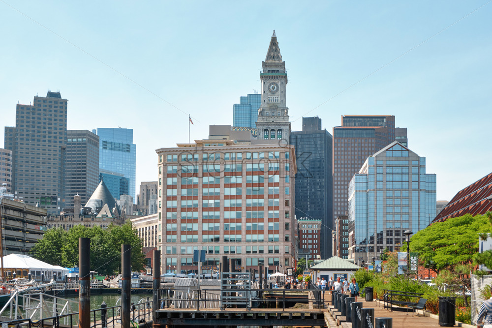 Home » Shop » photo » BOSTON, MASSACHUSETTS – SEPTEMBER 11, 2019: Shot of the high Custom House Tower near the port. People walking and relaxing