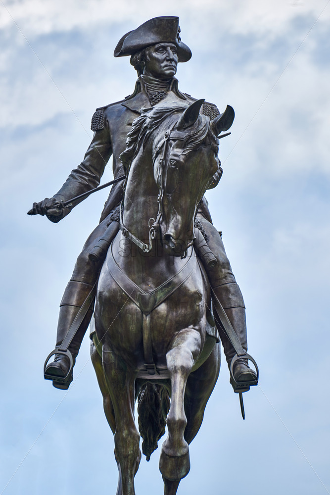 BOSTON, USA – SEPTEMBER 10, 2019: George Washington Equestrian Statue in the Public Garden in Boston, Massachusetts