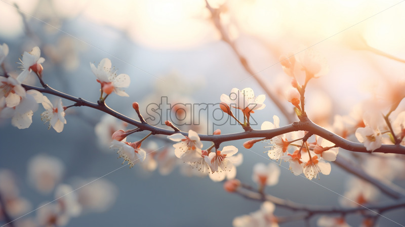 Flowers of white cherry trees on blue sky background in sunny day Royalty Free Stock photo
