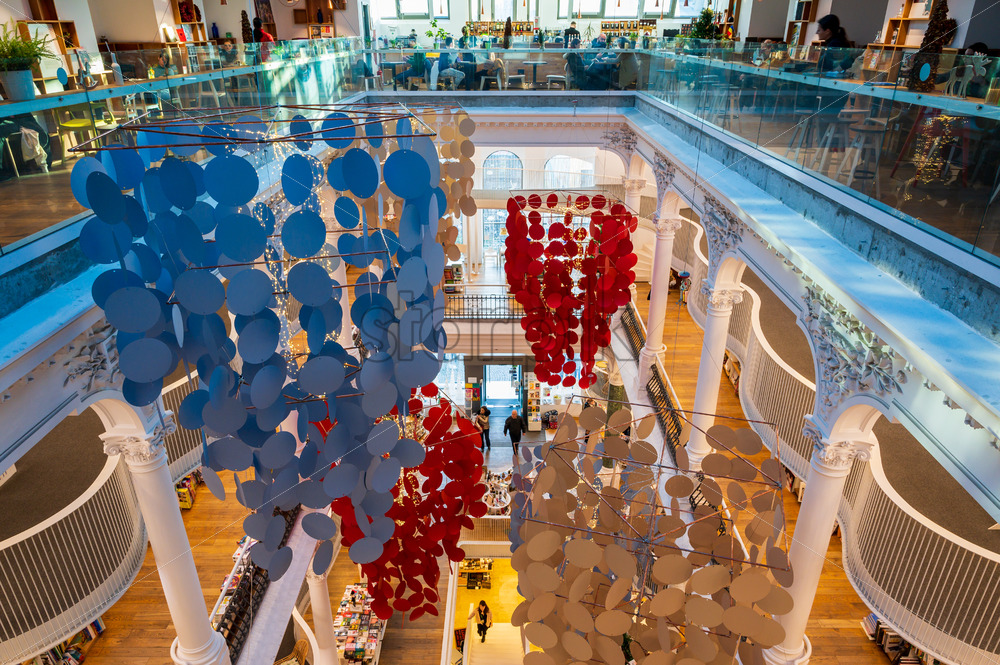 Bucharest, Romania – March 03, 2024: Vertical aerial drone view of walking people among old historical buildings and commercial shops in the old town Royalty Free Stock Video Footage