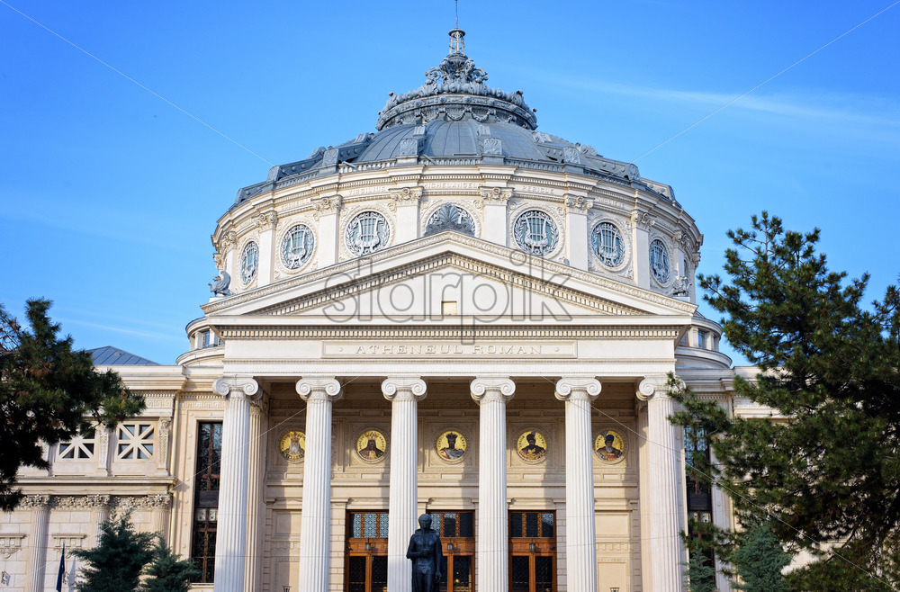 BUCHAREST, ROMANIA- 9 JANUARY, 2020: The famous neoclassical concert hall Romanian Athenaeum