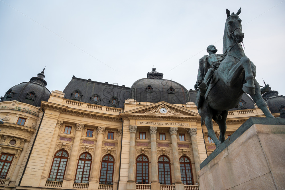 Home » Shop » photo » BUCHAREST, ROMANIA- 9 JANUARY, 2020: Central University Library Carol I, Equestrian monument to Carol I