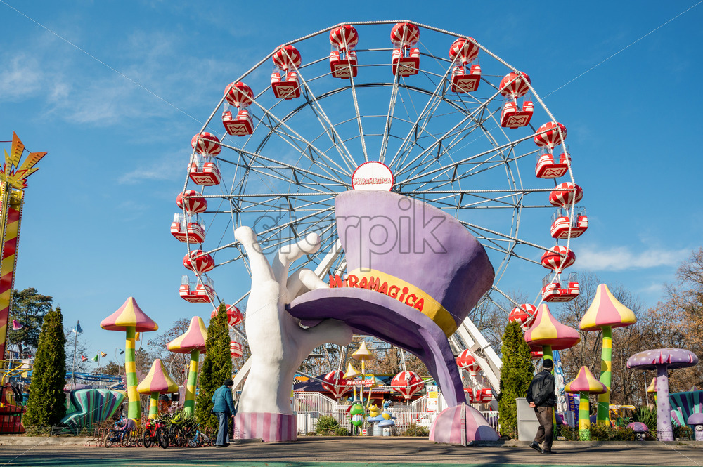 BUCHAREST, ROMANIA – DECEMBER, 2021: Miramagica amusement park, attractions, visitors