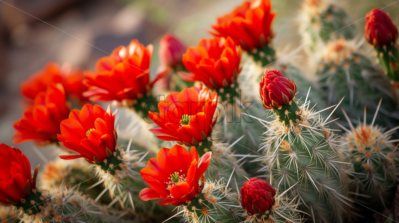 A cluster of Barrel cacti, standing tall in the arid expanse of the desert