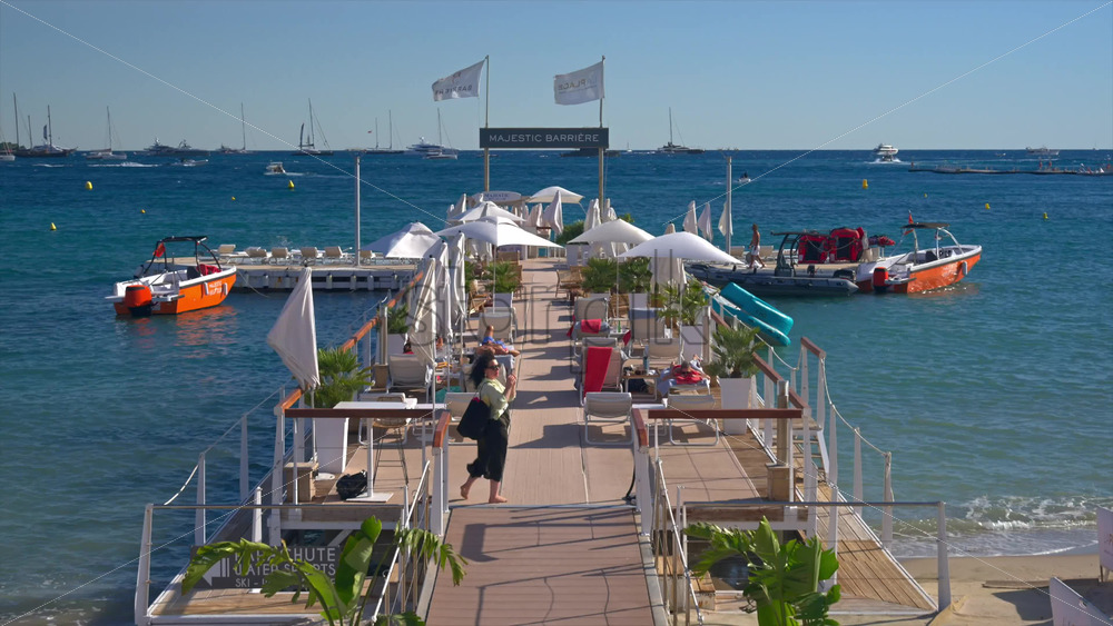Cannes, France – June 22, 2025: View of the Barriere Le Majestic beach restaurant in daylight Royalty Free Stock Video Footage