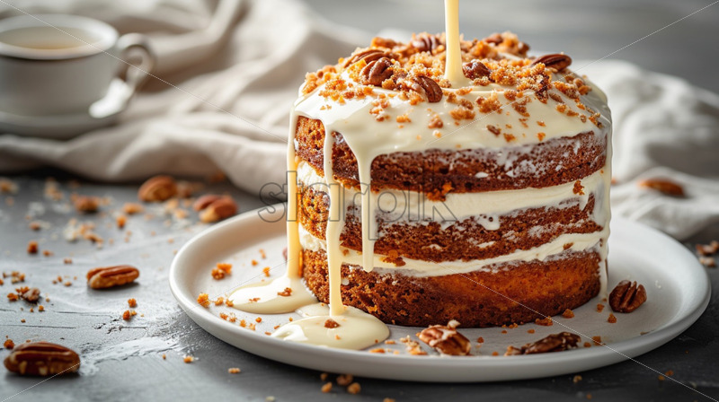 Delicate red velvet cake slices topped with cream cheese frosting and edible rose petals against on white isolate background