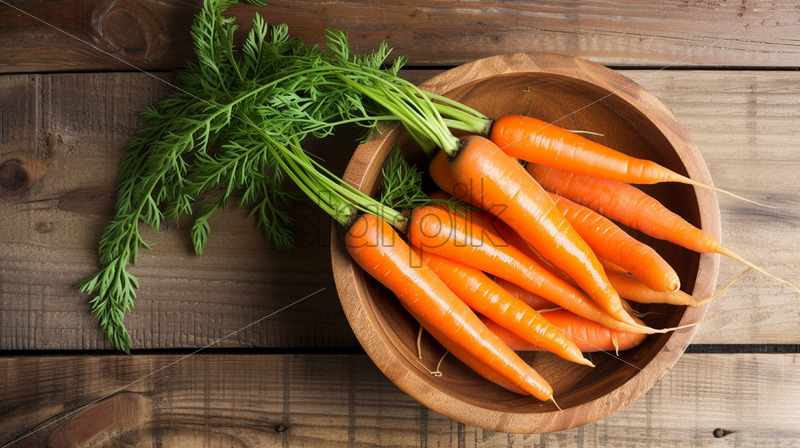 Carrot in a wooden bowl on a table