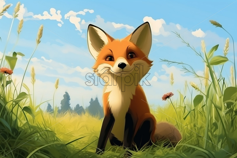The silhouette of a fox on a plain at sunset, created in 2d software