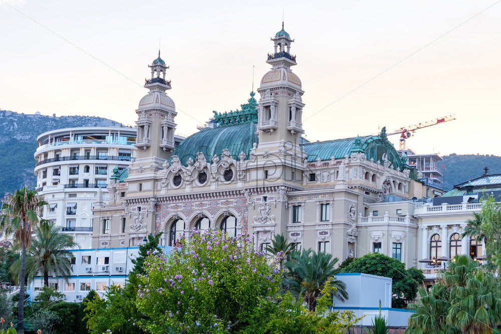 Casino Monte Carlo facade at sunset. View from bottom. Monaco beauties Royalty Free Stock photo