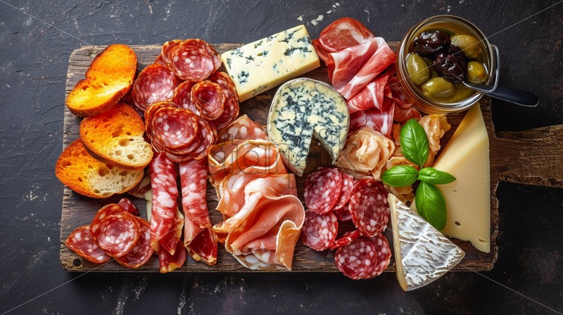Gourmet charcuterie board with assorted cured meats, smoked slices, and a mustard seed sauce served in a bowl Royalty Free Stock Video Footage