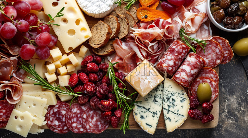 Gourmet charcuterie board with assorted cured meats, smoked slices, and a mustard seed sauce served in a bowl Royalty Free Stock Video Footage