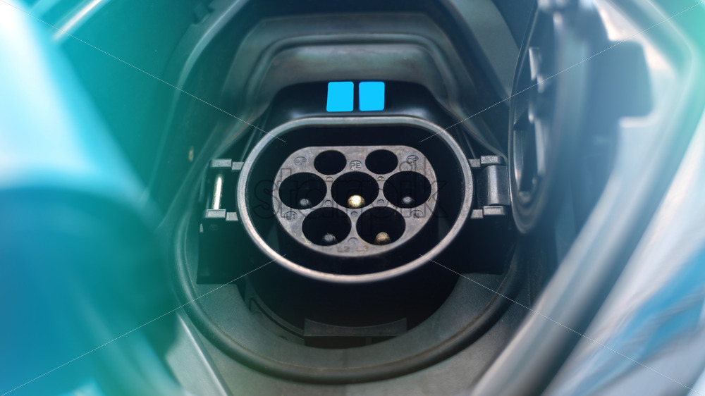 Charging socket of an electric car with blue light